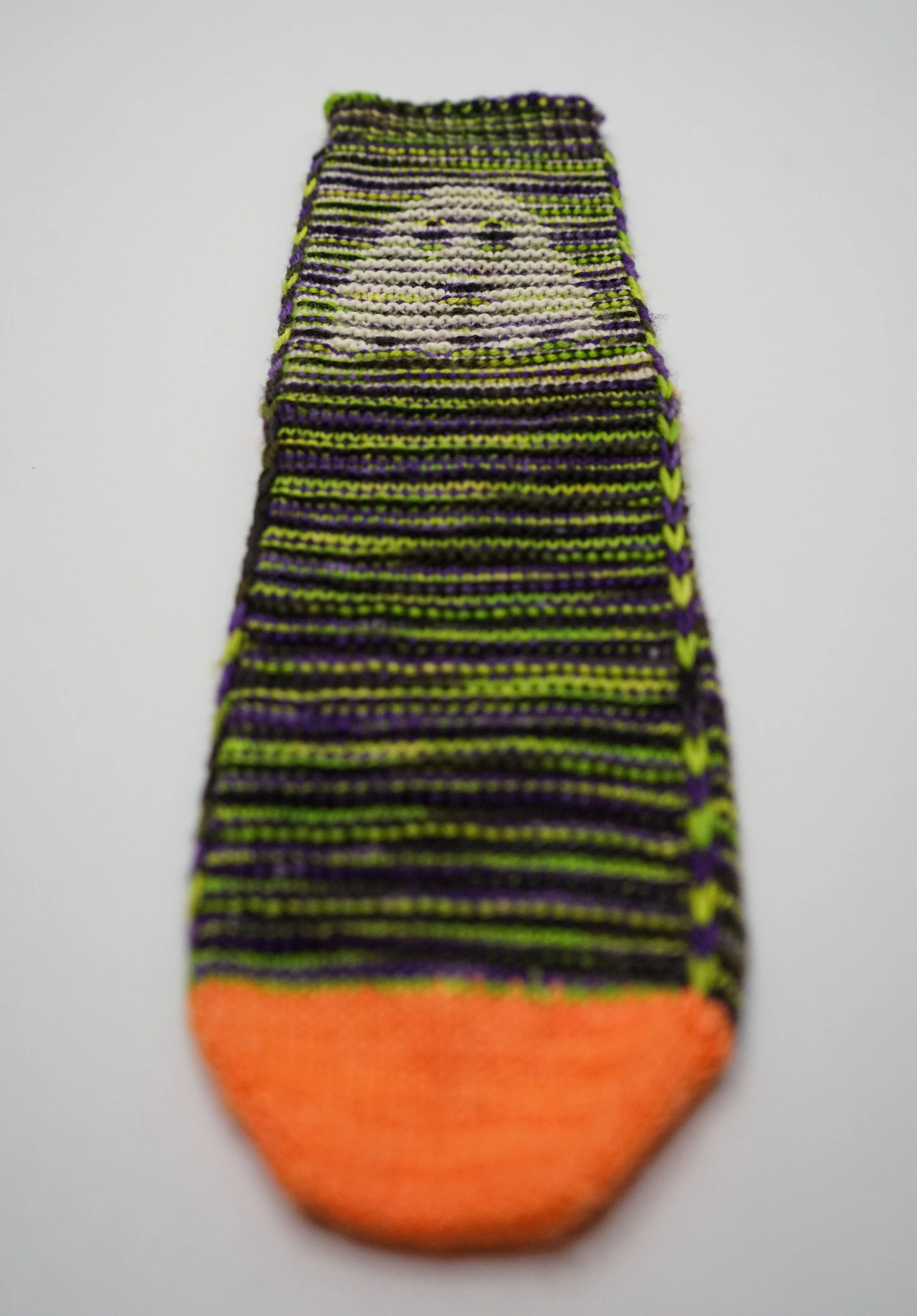 The Eventual Ghost socks feature an illusion / shadow knit ghost that appears and disappears depending on the viewing angle. They are especially fun in Halloween or Christmas colours, but can be enjoyed all year round - the choice is yours!