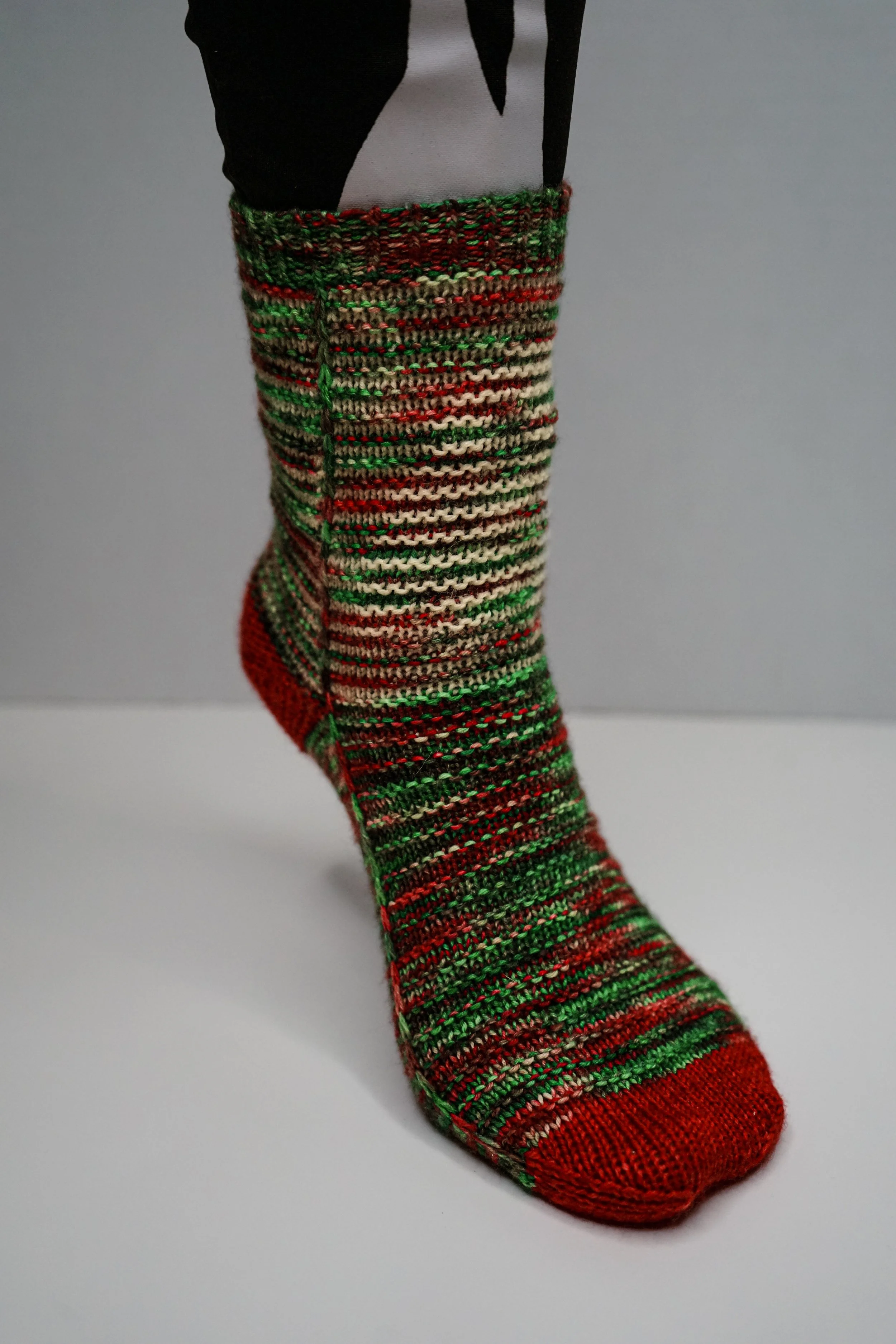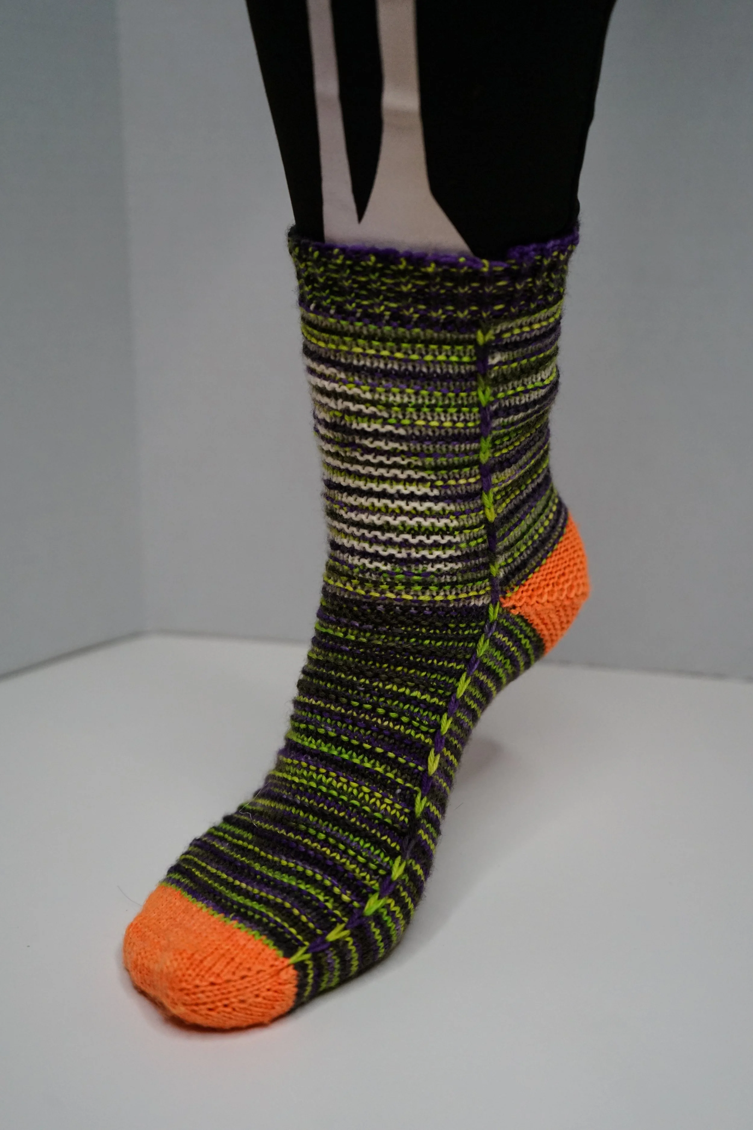 The Eventual Ghost Socks pattern is available for either toe up construction or cuff down construction. This is the CUFF DOWN version. The toe up version is available as a separate product in the shop.